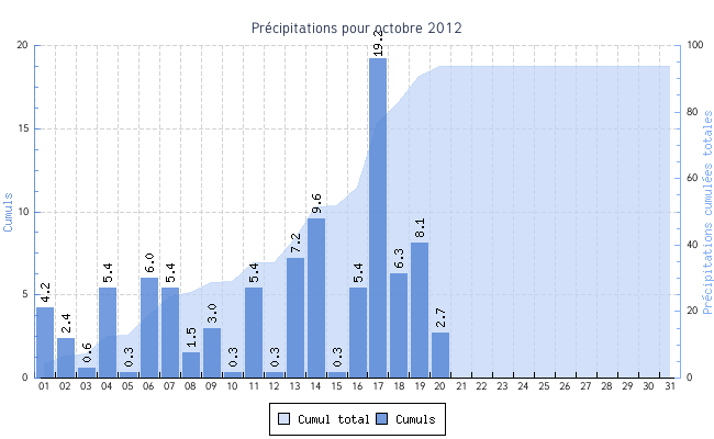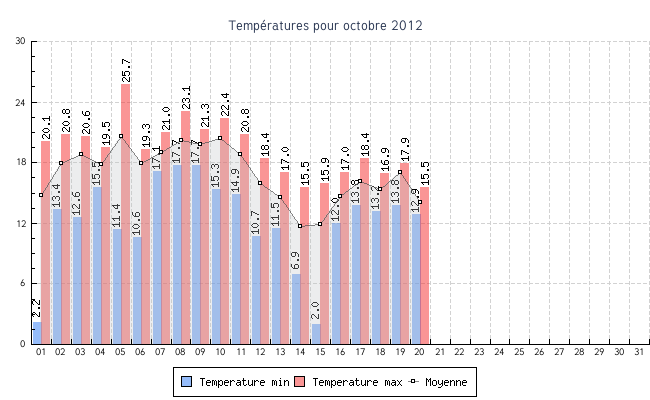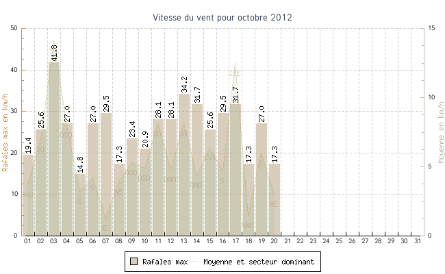 | 01 | 2.2 °C | 20.1 °C | 14.8 °C | 3.7 km/h (19.4 km/h) | SSO |
